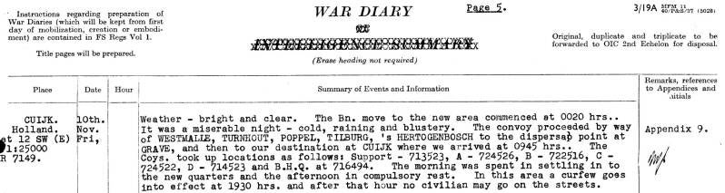 De Compagnies namen de volgende locaties in: Support- 7113523, A- 724526, B- 722516, C- 724522, D- 714523 en Basis Hoofd Kwartier op 716494.